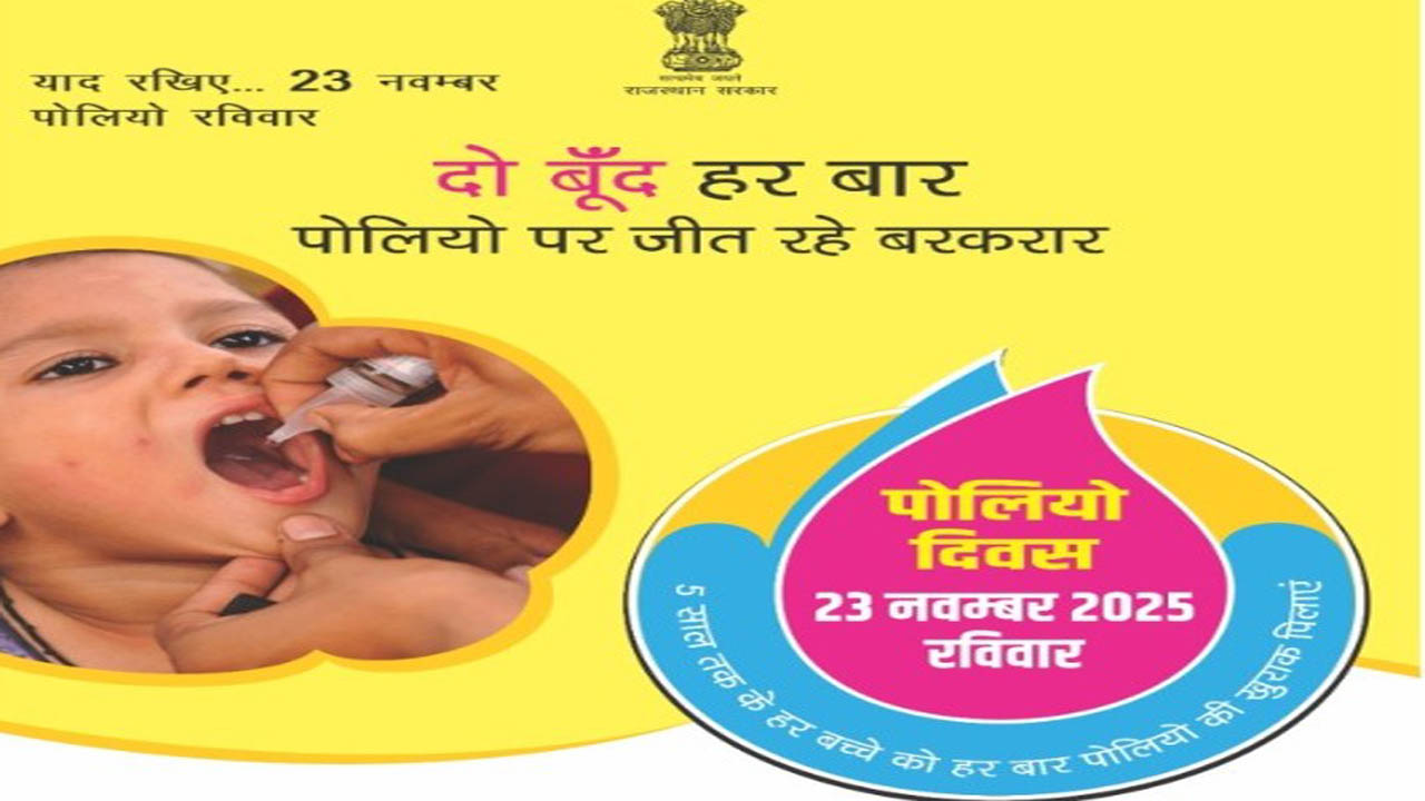 चूरू। उप-राष्ट्रीय पल्स पोलियो टीकाकरण अभियान के तहत रविवार, 23 नवम्बर, 2025 को जिलेभर में 1494 बूथों पर पल्स पोलियो की दवा पिलाई जायेगी। अभियान के तहत 5 वर्ष तक के सभी बच्चों को पोलियोरोधी दवा पिलाने के लिए बूथ बनाए गए हैं। जिले ...
