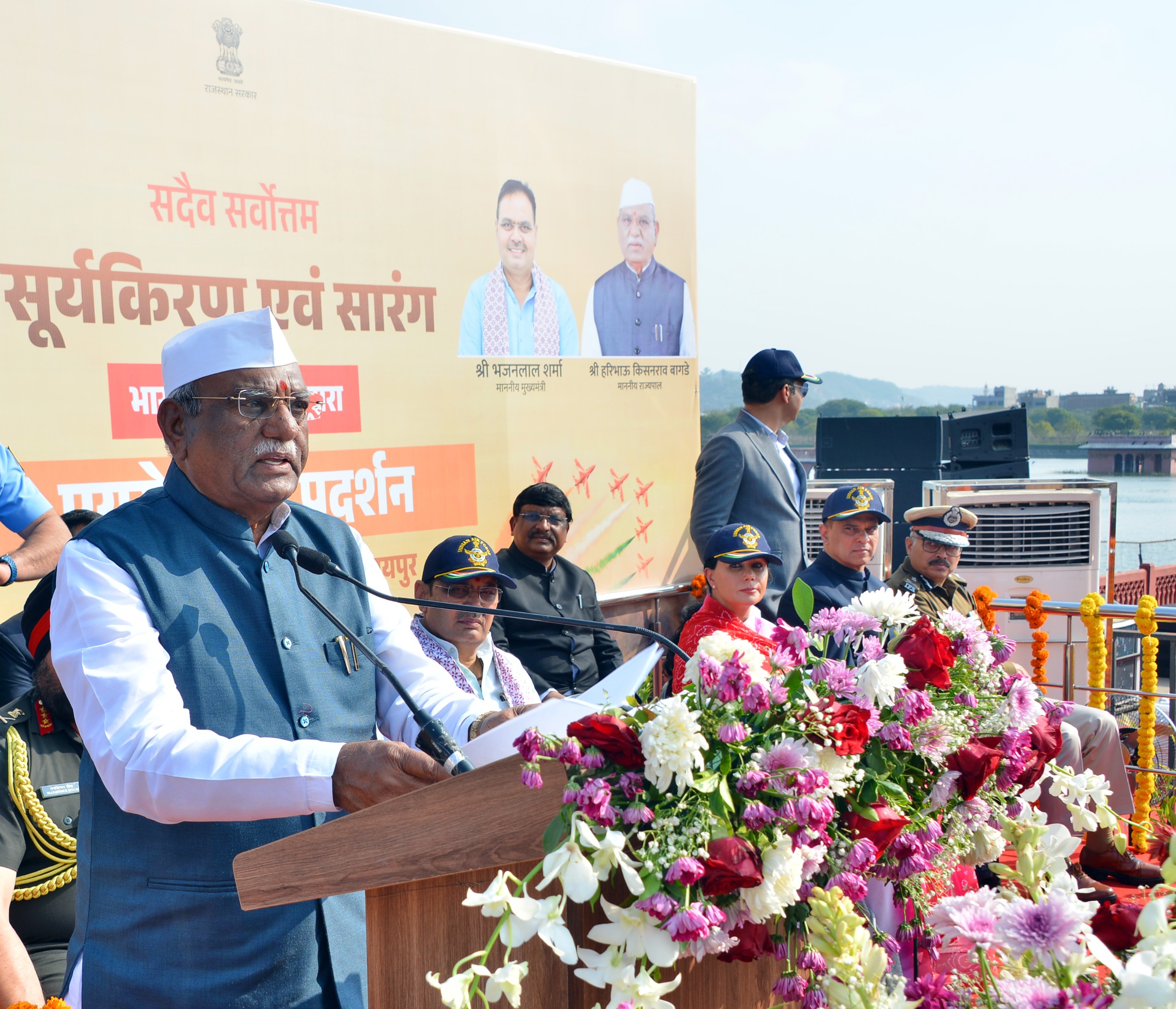 जयपुर। राज्यपाल हरिभाऊ बागडे ने रविवार को जलमहल पाल पर भारतीय वायु सेना द्वारा एयरोबेटिक सूर्यकिरण एवं सारंग का मनोहारी प्रदर्शन देखा। उन्होंने इसे सेना का ऐतिहासिक बताते हुए जोश जगाने वाला, माँ भारती के लिए संकल्पबद्ध हो कार्य कर...