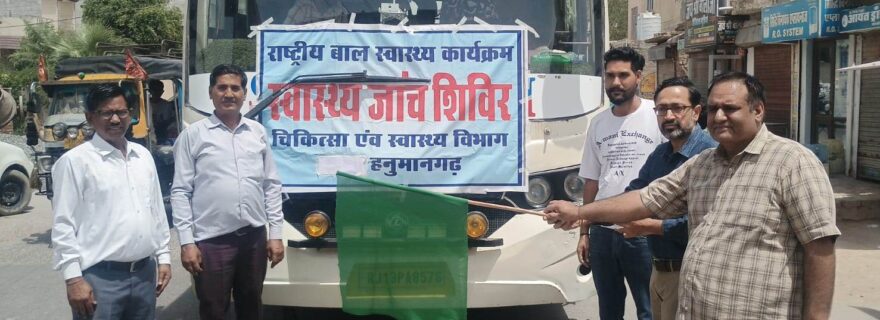 हनुमानगढ़। जिले में संचालित राष्ट्रीय बाल स्वास्थ्य कार्यक्रम (आरबीएसके) के अंतर्गत शनिवार को 13 बच्चों को वातानुकूलित बस के माध्यम से जयपुर में श्री सत्य साईं हॉस्पीटल एवं स्वास्थ्य विभाग के संयुक्त तत्वावधान में आयोजित ‘विशाल नि:शुल्क हृदय रोग शिविरÓ में जांच के लिए भेजा गया। यह 13 बच्चे हृदय की बीमारियों से ग्रस्ति थे और इन्हें रविवार को जयपुर में जांच के बाद अहमदाबाद के श्री सत्य साईं हॉस्पीटल बच्चों की नि:शुल्क सर्जरी (ऑपरेशन) किया जाएगा। बस को सीएमएचओ डॉ. नवनीत शर्मा एवं पीएमओ डॉ. शंकरलाल सोनी ने हरी झंडी दिखाकर रवाना किया।