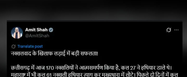जगदलपुर। केंद्रीय गृहमंत्री अमित शाह ने शुक्रवार को कहा कि छत्तीसगढ़ में भाजपा सरकार बनने के बाद से अब तक 2100 नक्सली आत्मसमर्पण कर चुके हैं। इसके अलावा करीब दो हजार नक्सलियों को गिरफ्तार और लगभग पांच सौ को निष्प्रभावी किया गया है। केंद्रीय गृहमंत्री शाह ने आज सोशल मीडिया एक्स पर लिखा कि जनवरी 2024 में छत्तीसगढ़ की भाजपा सरकार बनने के बाद से 2100 नक्सलियों ने आत्मसमर्पण किया है जबकि 1785 को गिरफ्तार किया गया है और 477 को निष्प्रभावी किया गया है। यह 31 मार्च 2026 से पहले नक्सलवाद को जड़ से खत्म करने के हमारे दृढ़ संकल्प का प्रतिबिम्ब है। इसके साथ ही उन्होंने कहा कि छत्तीसगढ़ में गुरुवार को 170 नक्सलियों ने आत्मसमर्पण किया है। एक दिन पहले 27 ने हथियार डाले थे। महाराष्ट्र में भी 61 नक्सली हथियार त्याग कर मुख्यधारा में लौटे। उन्हाेने बताया कि पिछले 2 दिनों में कुल 258 वामपंथी उग्रवादियों ने हिंसा का रास्ता छोड़ा है। यह नक्सलवाद के खिलाफ लड़ाई में बड़ी सफलता है। शाह ने एक्स पर लिखा कि हिंसा छोड़कर भारत के संविधान में अपना विश्वास पुर्नस्र्थापित करने के इन सभी के निर्णय की सराहना करता हूं। प्रधानमंत्री नरेन्द्र मोदी जी के नेतृत्व में सरकार की निरंतर कोशिशों का ही यह परिणाम है कि नक्सलवाद आखिरी सांंसें ले रहा है। नक्सलियों के विरुद्ध हमारी नीति स्पष्ट है, जो आत्मसमर्पण करना चाहते हैं, उनका स्वागत है, लेकिन जो लोग हथियार उठाए रहेंगे, उन्हें हमारी सुरक्षाबलों की कठोर कार्रवाई का सामना करना पड़ेगा। उन्होंने सभी नक्सलियों से मेरी अपील कि वे अपने हथियार त्याग दें और मुख्यधारा में लौट आएं। केंद्रीय गृह मंत्रालय की ओर से सोशल मीडिया साइट ‘एक्स’ पर बताया कि देश में अब नक्सली प्रभावित जिलों की संख्या 18 से घटकर 11 रह गई है। इसमें भी जो सबसे ज्यादा प्रभावित जिले थे। उनकी संख्या 6 से 3 रह गई है। अब केवल छत्तीसगढ़ का बीजापुर, सुकमा और नारायणपर ही 3 ऐसे जिले रह गए हैं।