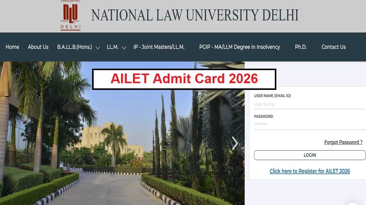 एआईएलईटी एडमिट कार्ड 2026 डाउनलोड करने के लिए सर्वप्रथम ऑफिशियल वेबसाइट nationallawuniversitydelhi.in पर विजिट करना होगा।