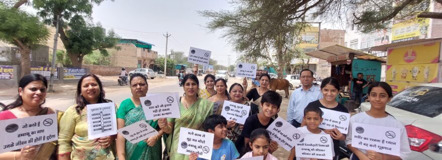 रैली निकालकर दुकानदारों से सिगरेट व तंबाकू न बैचने की अपील
