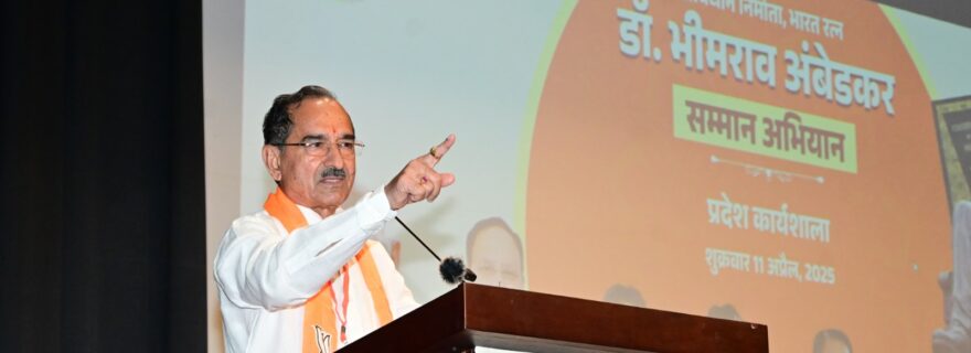 कार्यशाला के मुख्य वक्ता भाजपा युवा मोर्चा के राष्ट्रीय उपाध्यक्ष अभिनव प्रकाश सिंह ने कहा कि कांग्रेस और राहुल गांधी आज कल बाबा साहब तथा संविधान की बातें करते है, और समाज को गलत तथ्य रखकर बरगलाने की कोशिश करते है जबकि सच यह है कि कांग्रेस और नेहरू-गांधी परिवार ने ना कभी दलितों का भला किया, ना बाबा साहब का सम्मान किया और ना ही सामाजिक न्याय में उनकी आस्था रही है। संविधान सभा में बाबा साहब शामिल ना हो, इसके लिए षडयंत्र रचे गए। अगर हिंदू महासभा के नेता एमआर जयकर त्याग पत्र देकर बाबा साहब को संविधान सभा में नहीं भेजते तो आज संविधान ही कुछ ओर होता। उन्होंने कहा कि गोलमेज सम्मेलन में भाग लेने के कारण बाबा साहब को कांग्रेस के लोगों ने बार बार अपमानित किया। 1946 में उनकी प्रिटिंग प्रेस को जला दिया गया और अंतरिम सरकार में 20 में से 14 मंत्री ही बनाए, इनमें भी 5 मुसलमानों को शामिल किया गया था। नेहरू का मुस्लिमों से तो प्रेम था, लेकिन बाबा साहब के प्रति हिकारत भरी दृष्टि रखते थे। जिसकी चर्चा स्वयं बाबा साहब ने देश की संसद में अपने इस्तीफे का जिक्र करते हुए बताया।