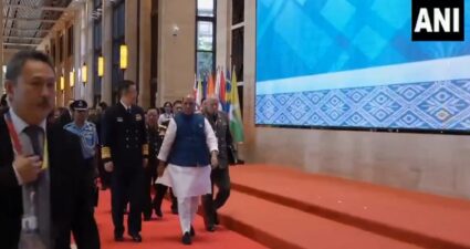 रक्षा मंत्री राजनाथ सिंह, लाओ पीडीआर के वियनतियाने में 11वीं ASEAN रक्षा मंत्रियों की बैठक-प्लस (एडीएमएम प्लस) में चीनी रक्षा मंत्री एडमिरल डोंग जून के साथ चलते हुए। अन्य देशों के रक्षा प्रमुख भी मौजूद हैं। भारत और चीन के राष्ट्र ...