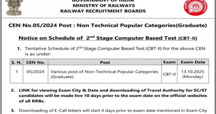 आरआरबी एनटीपीसी ग्रेजुएट सीबीटी-2 एग्जाम 13 अक्टूबर को, एडमिट कार...