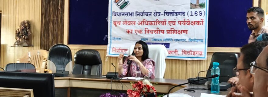 चित्तौड़गढ़। भारत निर्वाचन आयोग, नई दिल्ली के निर्देशानुसार वर्ष 2025 के अंतर्गत आयोजित होने वाले विशेष संक्षिप्त गहन पुनरीक्षण कार्यक्रम के सफल क्रियान्वयन हेतु विधानसभा क्षेत्र चित्तौड़गढ़ के समस्त बूथ लेवल अधिकारियों (बीएलओ) एवं पर्यवेक्षकों का एक दिवसीय प्रशिक्षण कार्यक्रम शुक्रवार को पंचायत समिति सभागार, चित्तौड़गढ़ में आयोजित किया गया। प्रशिक्षण सत्र की अध्यक्षता ईआरओ बीनू देवल ने की। उन्होंने अपने संबोधन में निर्वाचन कार्य से जुड़े अधिकारियों को कार्यक्रम की रूपरेखा, कार्यदायित्व एवं महत्वपूर्ण दिशा-निर्देशों से अवगत कराया। उन्होंने स्पष्ट किया कि मतदाता सूची का समयबद्ध, त्रुटिरहित एवं पारदर्शी अद्यतन लोकतांत्रिक व्यवस्था की आधारशिला है, और इसके लिए प्रत्येक बीएलओ एवं पर्यवेक्षक की भूमिका अत्यंत महत्वपूर्ण है।