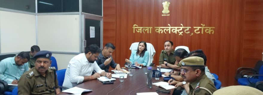 टांेक। जिले में त्योहारों को सौहार्द, भाईचारे से मनाने एवं शांति व कानून व्यवस्था को लेकर जिला कलेक्टर डॉ. सौम्या झा और पुलिस अधीक्षक विकास सांगवान ने भारत निर्माण सेवा कंेद्र में समीक्षा बैठक ली। इस दौरान वीडियों कॉन्फ्रेसिंग से जिले के सभी एएसपी, एडीएम, एसडीओ, तहसीलदार एवं थानाधिकारी जुड़े।