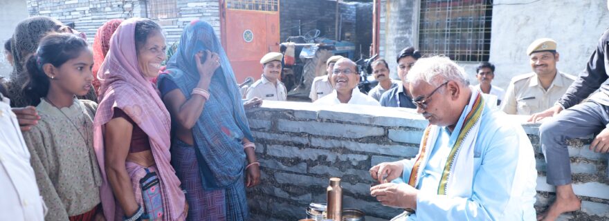 कोटा। शिक्षा एवं पंचायती राज मंत्री मदन दिलावर गुरूवार को देवली खुर्द गांव में आयोजित सरकार आपके द्वार समस्या समाधान शिविर में शामिल होने पहुंचे थे। रास्ते में भावपुरा गांव में शिक्षा मंत्री मजदूर महिलाओं से मिले और बड़ी सहजता के साथ जमीन पर बैठकर उनकी बात सुनी। महिलाओं से बातचीत के दौरान शिक्षा मंत्री ने उनसे पूछा कि आज टिफिन में क्या है। इस पर महिलाओं ने बताया कि टिफिन में दाल और रोटी है। मंत्री ने जब कहा कि मुझे खिलाओ तब एक मजदूर महिला बोली आप मंत्री हैं हमारा हाथ का बनाया भोजन खाएंगे। इस पर मंत्री ने कहा कि मैं खाऊंगा। इसके बाद शिक्षा मंत्री उन महिला मजदूरों के साथ बैठ गए और उनके टिफिन से दाल रोटी खाई। मंत्री को अपने हाथों से बना भोजन करते देख महिलाएं बहुत प्रसन्न थी। भोजन कराने वाली महिला ने कहा कि सभी नेता हर बार चुनाव में बस्ती में वोट मांगने तो आते हैं। लेकिन इस तरह से हम गरीब लोगों के हाथ से बना खाना किसी नेता ने नहीं खाया। ‘‘ये छै माह जैसा गरीब लोगान का असली नेता।’’