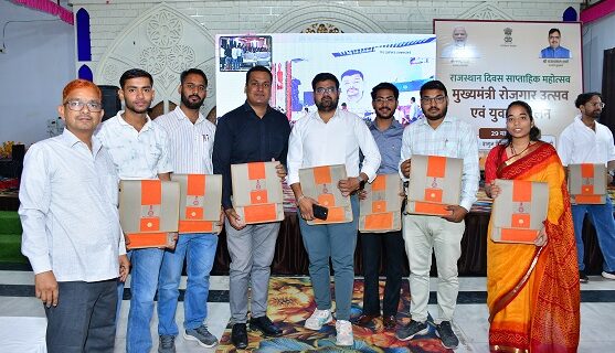 बूंदी। राजस्थान दिवस साप्ताहिक महोत्सव के तहत शनिवार को रोजगार उत्सव एवं युवा सम्मेलन का आयोजन किया गया। माननीय मुख्यमंत्री भजनलाल शर्मा की अध्यक्षता में कोटा के दशहरा मैदान में आयोजित राज्य स्तरीय कार्यक्रम का वीसी के माध्यम से सीधा प्रसारण नैनवां रोड स्थित शगुन मैरिज गार्डन के सभागार में किया गया। इस दौरान नवनियुक्त कार्मिकों ने नियुक्ति-पत्र पाकर खिले चेहरों से माननीय मुख्यमंत्री का आभार व्यक्त किया।