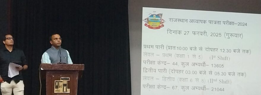 उन्होंने बताया कि परीक्षा 28 फरवरी, शुक्रवार को दो पारियों में होगी। प्रथम पारी में प्रातः 10 से दोपहर 12ः30 बजे तक तथा दूसरी पारी में अपरान्ह 3 से सायं 5ः30 बजे तक होगी। परीक्षा प्रारंभ होने के एक घंटा पूर्व तक ही परीक्षार्थी को परीक्षा केन्द्र में प्रवेश की अनुमति दी जाएगी। परीक्षा केन्द्र का मुख्य द्वार प्रथम पारी में प्रातः 9 बजे एवं द्वितीय पारी में दोपहर 2 बजे बंद कर दिया जाएगा।