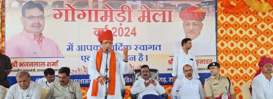 जयपुर। उत्तरी भारत के सबसे बड़े सांप्रदायिक सौहार्द के गोगामेड़ी मेले का हनुमानगढ़ में सोमवार को विधिवत् पूजा अर्चना, झंडारोहण और राष्ट्रगान के साथ शुभारंभ किया गया। पशुपालन, गोपालन, डेयरी एवं देवस्थान विभाग के कैबिनेट मंत्री जोराराम कुमावत ने शुभारंभ कार्यक्रम में शिरकत की। इस मौके पर मंत्री कुमावत ने गोगाजी की समाधि पर चादर चढ़ाई तथा माथा टेक कर प्रदेश वासियों की समृद्धि तथा राजस्थान विकसित प्रदेश बने इसके लिए प्रार्थना की। इस वर्ष 40 लाख से अधिक श्रद्धालुओं के आने की उम्मीद है।