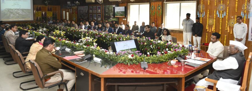 बैठक में राज्यपाल ने एक पेड़ मां के नाम अभियान के तहत जिला स्तर पर लगाए गए पेड़ों एवं उनकी सुरक्षा की जानकारी ली। बैठक में जिला कलक्टर आलोक रंजन ने विभिन्न योजनाओं की जानकारी पावर पॉइंट प्रेजेंटेशन के माध्यम से दी और जिले में हुए विभिन्न नवाचारों एवं कार्यक्रमों की जानकारी दी। बैठक में जिला कलक्टर ने विभिन्न योजनाओं के बारे में जानकारी दी।