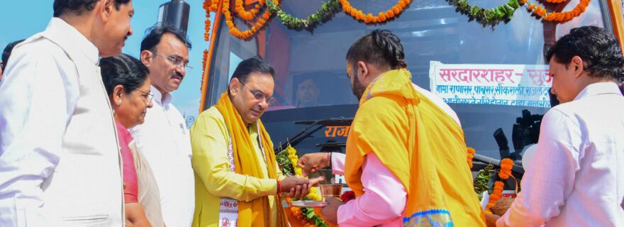 जयपुर। मुख्यमंत्री श्री भजनलाल शर्मा ने रविवार को अमर जवान ज्योति पर राजस्थान राज्य पथ परिवहन निगम की आधुनिक एवं सुविधायुक्त 128 ब्लू लाइन बसों का शुभारम्भ करते हुए उन्हें हरी झंडी दिखाकर रवाना किया। इसके साथ ही, उन्होंने ‘आपणी बस-राजस्थान रोडवेज’ ग्रामीण परिवहन सेवा का शुभारम्भ और वोल्वो, स्केनिया तथा एसी बसों में केटरिंग सुविधा की भी शुरूआत की। मुख्यमंत्री श्री भजनलाल शर्मा के नेतृत्व में प्रदेशवासियों के लिए सार्वजनिक परिवहन सेवा को अधिक सुदृढ़, सुरक्षित और सुविधायुक्त बनाने के लिए राज्य सरकार द्वारा राजस्थान राज्य पथ परिवहन निगम की आधुनिक एवं सुविधायुक्त ब्लू लाइन बसें शुरू की गई है। ये बसें प्रदेश भर के 23 आगारों को आवंटित की गई हैं।