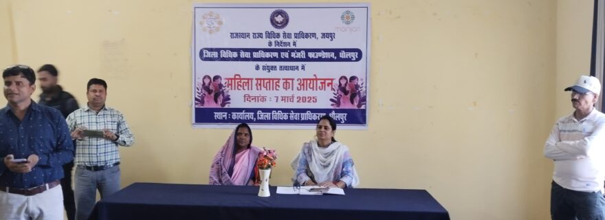 धौलपुर। महिला दिवस के अवसर पर जिला विधिक सेवा प्राधिकरण सचिव रेखा यादव द्वारा मंजरी फाउंडेशन और सहेली समिति के सहयोग से जिला विधिक सेवा प्राधिकरण धौलपुर में 7 मार्च शुक्रवार को महिला सप्ताह के अंतर्गत विधिक जागरूकता कार्यक्रम का आयोजन किया गया। कार्यक्रम में सचिव रेखा यादव द्वारा उपस्थित महिलाओं को बताया कि महिला सप्ताह भारतीय संविधान के तहत महिलाओं को कई मौलिक अधिकार मिलते हैं, इनमें शामिल हैं- समानता का अधिकार, स्वतंत्रता का अधिकार, शोषण के ख़लिफ़ अधिकार, धर्म की स्वतंत्रता का अधिकार, संस्कृति और शिक्षा संबंधी अधिकार, संवैधानिक उपचारों का अधिकार, मत देने का अधिकार, सार्वजनिक पद धारण करने का अधिकार, कानूनी कारोबार में प्रवेश करने का अधिकार, पारिवारिक कानून में बराबर है। इसके अलावा, महिलाओं के लिए कुछ विशेष प्रावधान भी किए गए है। पंचायती राज संस्थाओं में एक तिहाई आरक्षण की व्यवस्था, गर्भवती महिलाओं और शिशुओं को कुछ विशेष कानूनी अधिकार, कामकाजी माताओं के लिए कुछ प्रावधान, महिलाओं के लिए कुछ और अधिकार जैसे यौन हिंसा से मुक्ति, प्रजनन अधिकारों की स्वतंत्रता, शिक्षा प्राप्ति का अधिकार, विधानमंडलों, नगर पालिकाओं, स्थानीय निकायों और सभी समितियों, सम्मेलनों, आयोगों या प्रतिनिधि मंडलों में प्रतिनिधित्व पाने का अधिकार। भारतीय संविधान के तहत महिलाओं को समानता, स्वतंत्रता और शोषण के खिलाफ अधिकार मिलते हैं, इसके अलावा महिलाओं के लिए कुछ विशेष प्रावधान भी किए गए हैं जैसे समानता का अधिकार, कानून के सामने सभी लोगों को समानता मिलती है। जन्म, विचार, संप्रदाय, जाति, लिंग, या वंश के आधार पर भेदभाव नहीं किया जा सकता। रोजगार के क्षेत्र में समान अवसर मिलते हैं, स्वतंत्रता का अधिकार, बोलने और अभिव्यक्ति की आजादी मिलती है, आदि के बारे में तथा घरेलू हिंसा से महिलाओं का संरक्षण अधिनियम, 2005, महिलाओं के विरुद्ध अपराध, महिलाओं के स्वास्थ्य अधिकार, गर्भ का चिकित्सीय समापन अधिनियम, 1971, गर्भधारण पूर्व और प्रसव पूर्व निदान-तकनीक लिंग चयन प्रतिषेध अधिनियम, 1994, गिरफ्तार एवं बंदी महिलाओं के अधिकार, संदिग्ध और गिरफ्तार व्यक्तियों के अधिकार, महिला बंदियों के अधिकार, बाल विवाह प्रतिषेध अधिनियम, 2006, माता-पिता और वरिष्ठ नागरिकों का भरण-पोषण, रखरखाव तथा कल्याण अधिनियम, 2007, विधिक सेवा प्राधिकरण अधिनियम, 1987 एवं इसके साथ ही चाइल्ड हेल्पलाइन नंबर 1098 एवं नालसा के टोल – फ्री राष्ट्रीय विधिक सहायता हेल्पलाइन नम्बर 15100 की जानकारी दी इसके साथ ही रालसा व नालसा स्कीम के बारे में भी जानकारी दी गई।