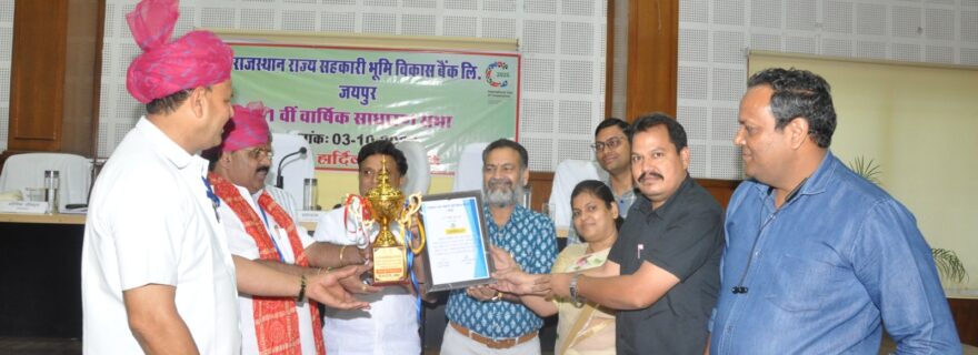 जयपुर। राजस्थान राज्य सहकारी भूमि विकास बैंक की आमसभा में मुख्यमंत्री अवधिपार ब्याज राहत एक मुश्त समझौता योजना के अंतर्गत अधिक नकद वसूली के लिए प्राथमिक सहकारी भूमि विकास बैंक जयपुर की बैंक प्रशासक श्रीमती ज्योति गुप्ता एवं वसूली प्रभारी मोहन कटारा को शील्ड एवं प्रशस्ति पत्र देकर बैंक के प्रतिनिधि के रूप में दिनांक 03.10.2025 को सम्मानित किया गया। राजस्थान के सभी भूमि विकास बैंकों में मुख्यमंत्री महोदय द्वारा लागू की गई यह योजना किसानों की आर्थिक मजबूती में मील का पत्थर साबित हो रही है। श्री कटारा ने बताया कि सभी प्राथमिक सहकारी भूमि विकास बैंकों में इस योजना के अंतर्गत अब तक के इतिहास में सबसे अधिक वसूली का कीर्तिमान स्थापित किया गया है। श्री कटारा ने बताया कि जयपुर जिला सहकारी भूमि विकास बैंक द्वारा 557 लाख की नकद वसूली कर 622 लाख रूपये की किसानों को राहत प्रदान की गई। सभी प्राथमिक सहकारी भूमि विकास बैंक के कर्मचारियों की ओर से वसूली प्रभारी प्रांतीय महासचिव आल राजस्थान सहकारी भूमि विकास बैंक एम्पलाइज यूनियन ने प्रदेष के माननीय मुख्यमंत्री का आभार व्यक्त किया है। मुख्यमंत्री महोदय द्वारा सहकारिता विभाग में लाई जा रही ऐसी जनकल्याणकारी योजनाएं सहकार से समृद्धि अभियान के लक्ष्य को पूर्ण करने में सहयोगी सिद्ध हो रही है