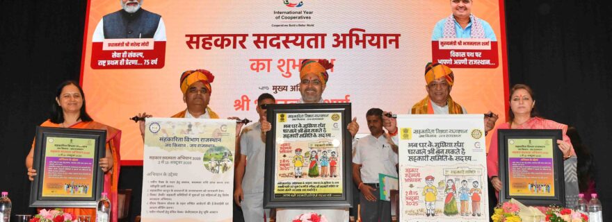 जयपुर। मुख्यमंत्री श्री भजनलाल शर्मा ने कहा कि यशस्वी प्रधानमंत्री श्री नरेंद्र मोदी के नेतृत्व एवं केंद्रीय सहकारिता मंत्री श्री अमित शाह के प्रयासों से देश सहकार से समृद्धि की नई कहानी लिख रहा है। उनके मार्गदर्शन में हमारी सरकार सहकारिता की शक्ति से प्रदेश की प्रगति को नया आयाम प्रदान कर रही है। इसी दिशा में 2 अक्टूबर से 15 अक्टूबर तक सहकारिता से जोड़ने के लिए सहकार सदस्यता अभियान चलाया जा रहा है। इसमें विशेष रूप से महिलाओं एवं युवाओं को जोड़ा जाएगा। श्री शर्मा गुरुवार को कांस्टीट्यूशन क्लब में सहकार सदस्यता अभियान के शुभारम्भ कार्यक्रम को संबोधित कर रहे थे। उन्होंने कहा कि लगभग 8 हजार 300 पैक्स स्तर पर शिविर आयोजित किए जा रहे हैं। इस अभियान में 5 विभागीय गतिविधियां आयोजित की जा रही हैं। साथ ही, सहकारी समितियों की संख्या में 10 प्रतिशत वृद्धि करने का लक्ष्य रखा गया है। उन्होंने कहा कि पैक्स विहीन 2 हजार 158 ग्राम पंचायतों में नवीन पैक्स एवं जिन ग्राम सेवा सहकारी समितियों के पास गोदाम बनाने के लिए भूमि नहीं है, उन्हें भूमि आवंटन का कार्य भी किया जाएगा। हमारी सरकार सहकारिता से जुड़ने वाली महिलाओं को प्रोत्साहित करने के लिए दलहन, मसालों आदि को भी इससे जोड़ने का प्रयास करेगी।