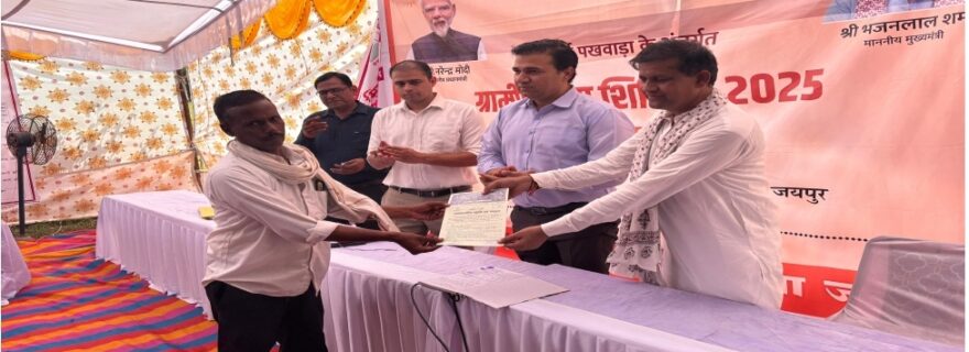 जयपुर। ग्राम पंचायत टूमली का बांस निवासी प्रहलाद पुत्र ग्यारसीलाल, रामअवतार सैन पुत्र लादुराम, दारासिंह पुत्र करण सिंह कई वर्षों से जिन भूखण्डो पर निवास कर रहे थे। उनका पट्टा उनके पास नहीं था। इस कारण उन्हें भूखण्ड का निर्माण पूर्ण करवाने में समस्या का सामना करना पड रहा था, तथा ऋण नहीं मिल पाने के कारण आर्थिक रूप से भी वे अपने सपनों के आशियाने को बनाने में सक्षम नहीं थे। राजस्थान के माननीय मुख्यमंत्री भजनलाल शर्मा के निर्देशानुसार दिनांक 20.09.2025 को ग्राम पंचायत टूमली का बांस में लगे ग्रामीण सेवा शिविर में इन लोगों ने उनकी समस्याओं के बारे में ग्राम पंचायत प्रशासन द्वारा कैम्प प्रभारी अधिकारी तहसीलदार चाकसू विपूल चौधरी को अवगत करवाया। पंचायत प्रशासन द्वारा उक्त तीनों लोगों को ग्राम पंचायत की आबादी भूमि में भूखण्डों के पट्टे तैयार करवाए गए। जिला कलेक्टर जितेन्द्र कुमार सोनी द्वारा उन तीनों ग्रामीणों को उनके कर कमलों से पट्टे जारी किए तो उनकी खुशी का कोई ठिकाना नही रहा। तीनों लाभर्थियों ने पट्टे प्राप्त करने पर जिला प्रशासन व राज्य सरकार का हृदय से आभार व्यक्त किया है।