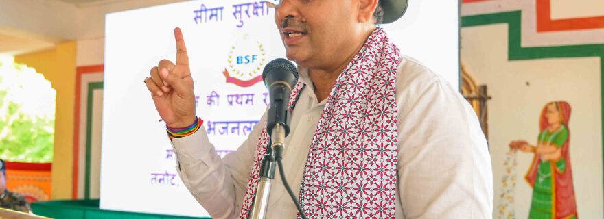 जयपुर। मुख्यमंत्री भजनलाल शर्मा ने कहा कि सीमा सुरक्षा बल (बीएसएफ) के जांबाज हर तरह की परिस्थितियों में अड़िग रहकर दिन-रात हमारी सीमाओं की रक्षा में तत्पर रहते हैं। उन्होंने कहा कि सीमाओं की सुरक्षा के साथ ही कानून व्यवस्था, अपराध की रोकथाम, सामाजिक समरसता बनाए रखने और आपदा प्रबंधन में बीएसएफ के जांबाज हर मोर्चे पर मुस्तैदी से डटे रहते हैं। शर्मा शनिवार को भारत-पाकिस्तान सीमा के निकट स्थित मां तनोट राय मंदिर परिसर में सीमा सुरक्षा बल के जवानों के साथ संवाद कर रहे थे। उन्होंने बीएसएफ के जवानों को शुभकामनाएं देते हुए कहा कि यशस्वी प्रधानमंत्री नरेंद्र मोदी के नेतृत्व में हमारे वीर जवानों ने ऑपरेशन सिंदूर के माध्यम से दुश्मन के छक्के छुड़ाकर हम सबको गौरवान्वित किया है। बीएसएफ और सेना ने ऑपरेशन सिंदूर में दुनिया के सामने बहादुरी का एक अद्वितीय उदाहरण पेश किया है।