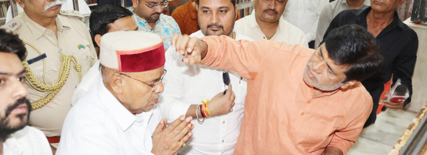 सीकर। के खाटूश्यामजी में कर्नाटक के राज्यपाल थावरचंद गहलोत ने बाबा श्याम के दर्शन किए और देश—प्रदेश की खुशहाली की कामना की । उन्होंने बाबा श्याम के दरबार में विधिवत पूजा-अर्चना कर बाबा की चौखट पर शीश झुकाकर देश की सुख-शांति और समृद्धि की प्रार्थना की। राज्यपाल के स्वागत में श्री श्याम मंदिर कमेटी के अध्यक्ष पृथ्वी सिंह ने उन्हें श्याम दुपट्टा एवं प्रतीक चिन्ह भेंट कर सम्मानित किया। श्री श्याम मंदिर कमेटी के पूर्व अध्यक्ष प्रताप सिंह चौहान ने मंदिर में पूजा-अर्चना करवाई।राज्यपाल के आगमन पर प्रशासनिक अधिकारियों ने भी अगवानी की और सुरक्षा सहित सभी व्यवस्थाओं का जायजा लिया।राज्यपाल गहलोत बाबा श्याम के दर्शन करने के बाद सालासर बालाजी धाम के लिए प्रस्थान कर गए।