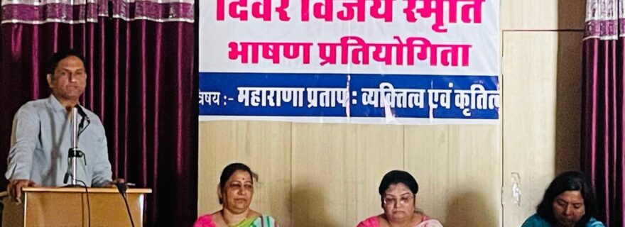 चूरू। जिला मुख्यालय स्थित राजकीय लोहिया महाविद्यालय में बुधवार को दिवेर विजय स्मृति भाषण प्रतियोगिता “महाराणा प्रताप – व्यक्तित्व एवं कृतित्व“ विषय पर भाषण प्रतियोगिता का आयोजन किया गया। कार्यक्रम की अध्यक्षता करते हुए प्राचार्य प्रो डॉ मंजू शर्मा ने कहा कि इस तरह की प्रतियोगिता विद्यार्थियों के समग्र और कलात्मक उन्नयन के लिए आवश्यक है। महाविद्यालय शैक्षणिक वातावरण के साथ विद्यार्थियों की समग्र प्रतिभा को उद्घाटित करने का मंच है। महाविद्यालय में विद्यार्थी न केवल शैक्षणिक स्तर पर उच्चता को प्राप्त करे अपितु समग्र रूप से अपने व्यक्तित्व को उदात्त बनाए। ऎसे कार्यक्रम इसी लक्ष्य की साधना का साधन है।