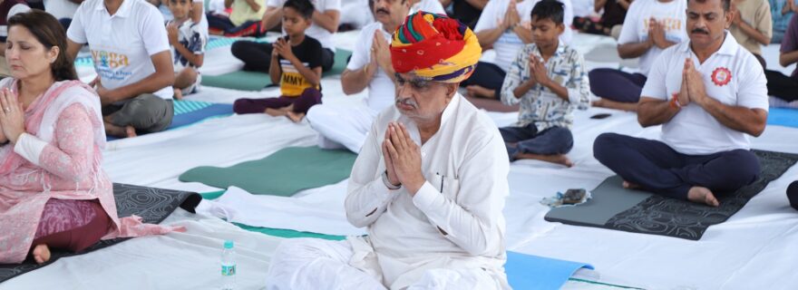 जयपुर। पाली जिला प्रशासन, आयुर्वेद विभाग एवं नगर निगम, पाली मुख्यालय के संयुक्त तत्वावधान में शनिवार को मुख्यालय के लाखोटिया उद्यान में 11वां अंतर्राष्ट्रीय योग दिवस के जिला स्तरीय कार्यक्रम में हजारों लोगों ने प्रभारी मंत्री झाबर सिंह की मौजूदगी में प्रात: योग किया । योग दिवस की थीम एक पृथ्वी, एक स्वास्थ्य के लिए योग की रही । इस अवसर पर प्रधानमंत्री नरेन्द्र मोदी के संदेश का प्रसारण किया गया।प्रभारी मंत्री झाबर सिंह खर्रा ने इस अवसर पर कहा कि योग करने से तन और मन स्वस्थ रहता है। आमजन को नित्य प्रतिदिन योग करना चाहिये। आयुर्वेद विभाग के उपनिदेशक डॉ बजरंगलाल शर्मा व उपनिदेशक शिवकुमार ने बताया कि इस दौरान योग प्रशिक्षक द्वारा योग की विभिन्न मुद्राओं व आसनों के माध्यम से योग करवाया जो योग के कामन प्रोटोकाल के अनुसार किया गया। इस अवसर पर बडे ,बजुर्ग, बच्चे ,महिलाओं ने भी योग किया।