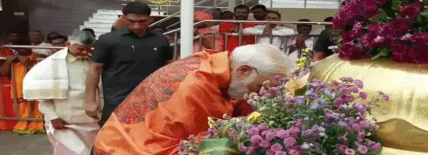 पीएम मोदी श्रीशैलम में श्री शिवाजी स्फूर्ति केंद्र भी पहुंचे और वहां पूजा-अर्चना की। यह एक मेमोरियल कॉम्प्लेक्स है। आंध्र प्रदेश के मुख्यमंत्री एन चंद्रबाबू नायडू भी साथ थे।यहां मेडिटेशन हॉल है, जिसके चारों कोनों पर चार मशहूर किलों, प्रतापगढ़, राजगढ़, रायगढ़ और शिवनेरी के मॉडल बने हैं। इसके बीच में छत्रपति शिवाजी महाराज की ध्यान की मुद्रा वाली मूर्ति भी है।