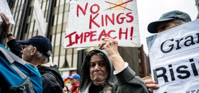 न्यूयॉर्क। अमेरिका भर में तट से तट तक, उत्तर से दक्षिण तक लाखों लोगों ने “नो किंग्स” के बैनर तले राष्ट्रपति डोनाल्ड ट्रंप के खिलाफ विरोध प्रदर्शन में भाग लिया। लोगों ने उन पर देश को सत्तावादी रास्ते पर ले जाने का आरोप लगाया।डेमोक्रेटिक पार्टी द्वारा प्रायोजित यह विरोध प्रदर्शन जून में हुए पहले “नो किंग्स प्रोटेस्ट” के बाद दूसरा था, और इस बार भीड़ ज्यादा थी। ट्रंप से चुनाव हारने वाली कमला हैरिस ने एक्स पर पोस्ट किया, “मैं आपको अपने पड़ोसियों के साथ नो किंग्स कार्यक्रम में शांतिपूर्ण विरोध प्रदर्शन में शामिल होने और अपनी आवाज उठाने के लिए प्रोत्साहित करती हूं। हमारे देश में, सत्ता जनता के पास है।” “नो किंग्स” थीम का उद्देश्य उन ब्रिटिश-विरोधी विरोध प्रदर्शनों को याद दिलाना है जिनके कारण अमेरिका का जन्म हुआ, राजशाही और निरंकुशता का त्याग किया गया, और एक गणतांत्रिक शासन प्रणाली को अपनाया गया। राष्ट्रपति ट्रंप ने इस बात से इनकार किया कि उनकी कोई शाही महत्वाकांक्षा है या वे किसी राजा की तरह व्यवहार कर रहे हैं। उन्होंने फॉक्स बिजनेस टीवी के एक इंटरव्यू लेने वाले से कहा, “वे मुझे राजा कह रहे हैं। मैं राजा नहीं हूं।” इन विरोध प्रदर्शनों के प्रायोजकों में अमेरिकन सिविल लिबर्टीज़ यूनियन, मानवाधिकार अभियान और शिक्षकों जैसे कुछ ट्रेड यूनियन शामिल हैं। ये विरोध प्रदर्शन ऐसे समय में हुए जब सीनेट में डेमोक्रेट्स और रिपब्लिकन्स के बीच गतिरोध के कारण सरकार का अधिकांश हिस्सा बंद है और इसे समाप्त करने के लिए कोई बातचीत नहीं हो पाई। डेमोक्रेट्स मेडिकल बीमा और स्वास्थ्य संबंधी कार्यक्रमों में कटौती को फिर से लागू करने की मांग कर रहे हैं, जिसके बारे में ट्रंप का कहना है कि इससे राजकोष से 1.5 ट्रिलियन डॉलर से ज्यादा की राशि निकल जाएगी। इस गतिरोध के कारण, सीनेट सरकार को अस्थायी रूप से वित्त पोषित करने के लिए कानून पारित करने में असमर्थ है। ट्रंप द्वारा डेमोक्रेटिक शासित राज्यों में संघीय बल भेजने और अवैध प्रवासियों के खिलाफ कड़ी कार्रवाई करने के बाद ये विरोध प्रदर्शन भड़क उठे। सरकारी बंद के दौरान, ट्रंप ने कई डेमोक्रेट शासित राज्यों में कार्यक्रमों के लिए फंड रोक दिया है। विरोध प्रदर्शन का केंद्र बिंदु ट्रंप द्वारा डेमोक्रेट्स के अधीन राज्यों में संघीय नियंत्रण वाली सेना का इस्तेमाल करना था, जिसमें उन्होंने दावा किया कि कानून-व्यवस्था चरमरा गई है और अपराध बेकाबू हो गए हैं। उन्होंने कुछ शहरों में कानून-व्यवस्था अपने हाथ में लेने की धमकी दी है, हालांकि अमेरिकी संविधान के तहत राष्ट्रपति शासन का कोई प्रावधान नहीं है। न्यूयॉर्क के टाइम्स स्क्वायर पर हजारों प्रदर्शनकारियों ने जाम 