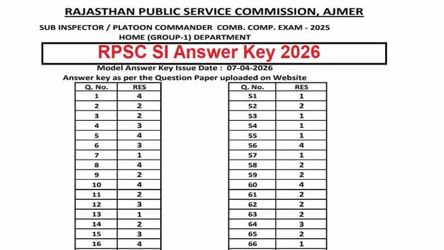 आरपीएससी एसआई भर्ती परीक्षा का आयोजन 5 एवं 6 अप्रैल को प्रतिदिन दो शिफ्ट में करवाया गया था। पहली पाली में पेपर 1 व दूसरी पाली में पेपर 2 का आयोजन हुआ था। अपने जिस शिफ्ट एवं दिन में परीक्षा दी थी उसके अनुसार उत्तर कुंजी नीचे दिए लिंक ऐसे डाउनलोड कर सकते हैं।