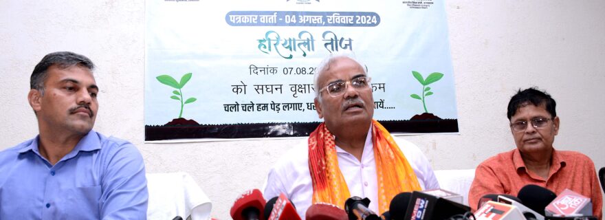 जयपुर। हरियाली तीज के पवित्र अवसर पर 7 अगस्त पर माननीय मुख्यमंत्री भजनलाल शर्मा की प्रेरणा से शिक्षा एवं पंचायती राज विभाग पूरे प्रदेश में वृहद स्तर पर वृक्षारोपण कार्यक्रम आयोजित करेगा। इस दिन प्रदेशवासियों द्वारा एक साथ एक ही समय में करोड़ों पौधे लगाये जायेगें जो अपने आप में एक कीर्तिमान होगा।