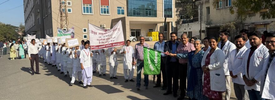 भीलवाड़ा। हर वर्ष की भाँति इस वर्ष 09-15 मार्च 2025 को विश्व ग्लूकोमा सप्ताह मनाया जा रहा है। इस वर्ष की थीम “ग्लूकोमा मुक्त विश्व के लिए एकजुट होना“ है। इसी के तहत जिले में बुधवार 12 मार्च को प्रातः 8ः30 बजे महात्मा गांधी अस्पताल के मैन पोर्च से एक जनजागरुकता रैली का आयोजन किया किया गया। रैली को सीएमएचओ डॉ सीपी गोस्वामी, चिकित्सा अधीक्षक एमजी हॉस्पिटल डॉ अरुण गौड़ एवं आचार्य एवं विभागाध्यक्ष नेत्र रोग विभाग डॉ रजनी गौड़ ने हरी झंडी दिखाकर रवाना किया।