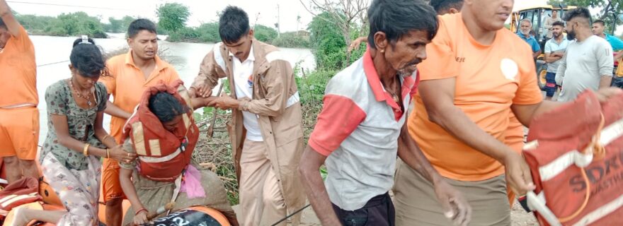 पाली। मंगलवार को सवेरे 08ः45 बजे पुलिस कन्ट्रोल रूम जिला पाली से भारी बरसात के कारण पुलिस थाना रोहट के अन्तर्गत जलमग्न ग्राम दूदहिया में कुछ ग्रामीणों के फंसे की सूचना एसडीआरएफ राजस्थान कन्ट्रोल रूम जयपुर को मिलने पर टीम कन्ट्रोल रूम द्वारा कमाण्डेन्ट राजेन्द्र सिंह सिसोदिया के निर्देशानुसार मानसून सत्र 2024 में आपदा राहत एवं बचाव के लिए एसडीआरएफ एफ कम्पनी जोधपुर की पुलिस थाना रोहट जिला पाली में तैनात रेस्क्यू टीम एफ-08 के प्रभारी कानि0 गणपत को अविलम्ब घटनास्थल के लिए रवाना होने के निर्देश दिए।