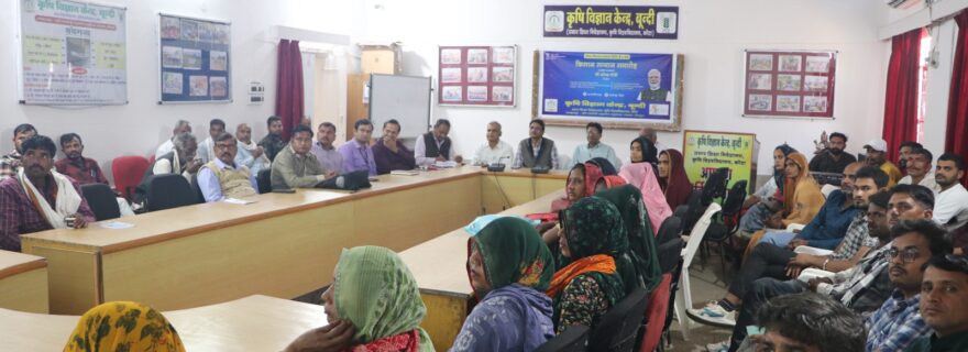 बून्दी। कृषि विज्ञान केन्द्र श्योपुरिया बावड़ी पर सोमवार को ‘‘किसान सम्मान समारोह’’ पर रबी फसलों में पौध संरक्षण विषय पर गोष्ठी का आयोजन किया गया। केंद्र के वरिष्ठ वैज्ञानिक एवं अध्यक्ष डॉ. हरीश वर्मा ने गोष्ठी के दौरान जानकारी देते हुए बताया कि वर्तमान समय में धनियां, सरसों एवं मसूर में मोयला कीट का प्रकोप बना हुआ है, अतः इसके नियंत्रण के लिए सिफारिश किय गये कीटनाशकों का उचित घोल बनाकर छिड़काव करें। गोष्ठी के दौरान किसान सम्मान समारोह का सीधा प्रसारण किसानो को दिखाया गया, जो कि भागलपुर (बिहार) से माननीय प्रधानमंत्री श्री नरेन्द्र मोदी की अध्यक्षता में किया गया। इस दौरान माननीय प्रधानमंत्री नरेंद्र मोदी द्वारा बिहार के भागलपुर से प्रधानमंत्री किसान सम्मान निधि योजना की 19 वीं किस्त डीबीटी के माध्यम से जारी की गई। जिसमें जिले के 75 प्रगतिशील कृषक एवं कृषक महिलाओं ने भाग लिया एवं केन्द्र पर स्थित जीवन्त इकाइयों एवं क्राॅप कैफेटेरिया का अवलोकन कर कृषि से संबंधित तकनीकी जानकारी हासिल की।