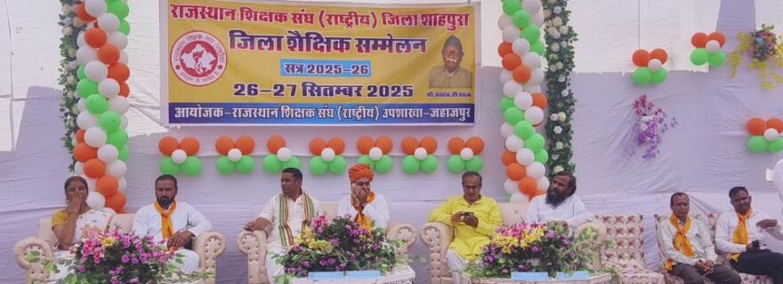 जहाजपुर। वृंदावन धाम में आयोजित राजस्थान शिक्षक संघ राष्ट्रीय जिला सम्मेलन में शिक्षकों की आवाज़ गूंज उठी। तीन सत्रों में आयोजित इस सम्मेलन ने जहां प्रेरक व्याख्यान दिए, वहीं शिक्षकों की समस्याओं पर भी खुलकर चर्चा हुई। प्रथम सत्र व्याख्यान माला रहा, जिसमें जगदीश शर्मा ने जयदेव पाठक के जीवन से प्रेरणा लेने का संदेश दिया, इंदिरा धूपिया ने अहिल्याबाई होलकर की नारी सशक्तिकरण की मिसाल पेश की और जिला मंत्री संजीव कुमार ने संगठनात्मक कार्यक्रमों का खाका रखा। उद्घाटन सत्र में मुख्य अतिथि विधायक गोपीचंद मीणा (जहाजपुर-कोटड़ी) ने शिक्षकों की समस्याओं के समाधान का आश्वासन दिया। शाहपुरा विधायक लाला राम बैरवा ने शिक्षकों से प्रार्थना सभा और खेल गतिविधियों को बढ़ावा देने की अपील की। सूर्यप्रकाश शर्मा ने कुटुंब प्रबोधन व संयुक्त परिवार की आवश्यकता पर विचार रखे, प्रदेश उपाध्यक्ष सुषमा विश्नोई और शंकरलाल माली ने भी शिक्षकों को संबोधित किया। अंत में सम्मेलन ने यह संकल्प लिया कि संगठन की मजबूती और सफलता सबके सामूहिक प्रयास और कर्त्तव्यनिष्ठा से ही संभव है।