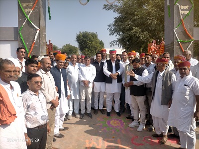 बीदासर। ग्राम बैनाथा-जोगलिया के राजकीय उच्च माध्यमिक विद्यालय में भामाशाह स्वर्गीय भिवाराम गोदारा की पुण्य स्मृति में उनके सुपुत्र पुरखाराम के द्वारा 3.25 लाख रुपये की लागत से बनवाए गए विद्यालय के मुख्य प्रवेश द्वार का लोकार्पण सांसद राहुल कस्वां, विधायक मनोज मेघवाल, पुसाराम गोदारा ने फीता काटकर किया। इस दौरान सांसद राहुल कस्वां ने कहा की शिक्षा से ही गांव का उद्धान होता है, जब बेटी जन्म लेती है तो उसके नाम का एक पेड़ लगाना चाहिए। रतनगढ़ विधायक पुसाराम गोदारा ने कहा कि भामाशाह ने अपनी मेहनत की कमाई से स्कूल का शानदार प्रवेश द्वार बनवाकर शिक्षा जगत को समर्पित किया है। शिक्षण संस्थाओं में जो भी दान करते हैं उससे बड़ा कोई दान नही है। सुजानगढ़ विधायक मनोज मेघवाल ने कहा कि बच्चे के भविष्य का निर्माण तभी होगा जब शिक्षा अच्छी होगी। इस दौरान अतिथियों ने भामाशाह परिवार का माला साफा पहनाकर स्वागत किया। इस मौके पर लाभूराम, मदनलाल, रामचंद्र गोदारा, नगर कांग्रेस अध्यक्ष जेठाराम यादव, पालिका उपाध्यक्ष मेराज उल हसन छींपा, सरपंच ज्ञानू देवी भामू, सुरेश खेरिया, रामेश्वर दुसाद, विद्याधर बेनीवाल, प्रेम सिंह, रामूराम दुसाद, मनोज ढाका, रामपाल पांडिया हाजी सादिक सोलंकी, मोहनलाल, पुनाराम मेघवाल, विद्यालय प्रधानाचार्य आरती सहित स्टाफ उपस्थित रहा।