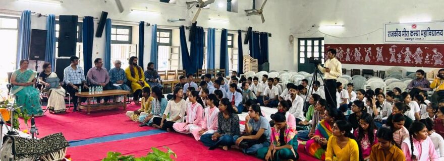 उदयपुर। राजकीय मीरा कन्या महाविद्यालय में संगीत नाटक अकादमी नई दिल्ली के तत्वावधान में संत मीराबाई की 525 वीं जयंती के अवसर पर “कला धरोहर” श्रृंखला के तहत दो दिवसीय मीरा भजन कार्यशाला का शुभारंभ बुधवार को मां सरस्वती के सम्मुख दीप प्रज्वलन से हुआ। प्राचार्य प्रो डॉ दीपक माहेश्वरी ने स्वागत उद्बोधन देते हुए विद्यार्थियों को कला का महत्व बताया और अपनी रुचि के अनुसार कोई भी कला को अपनाने के लिए प्रेरित किया। पुणे की प्रतिष्ठित कलाकार सानिया पाटनकर ने विद्यार्थियों को रियाज की बारीकियों से अवगत कराते हुए तीनों सप्तको में स्वरों का अभ्यास कराया। साथ ही संत शिरोमणि मीराबाई के भजन “पायो जी मैंने राम रतन धन पायो” सिखाया और भजन गायकी में स्वर के लगाव और बारीकियां से भाव उत्पन्न की प्रक्रिया से अवगत करवाया।