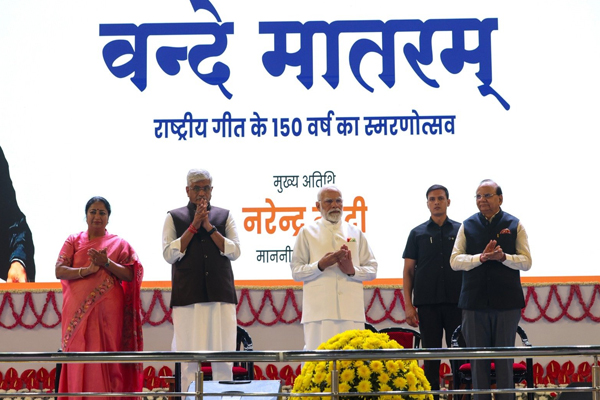 उन्होंने कहा कि ‘वंदे मातरम’, ये शब्द एक मंत्र है, एक ऊर्जा है, एक स्वप्न है और एक संकल्प है। ‘वंदे मातरम’, ये शब्द मां भारती की साधना है, मां भारती की आराधना है। ‘वंदे मातरम’, ये शब्द हमें इतिहास में ले जाता है, ये हमारे वर्तमान को नए आत्मविश्वास से भर देता है और हमारे भविष्य को ये नया हौसला देता है कि ऐसा कोई संकल्प नहीं जिसकी सिद्धि न हो सके, ऐसा कोई लक्ष्य नहीं जिसे हम भारतवासी पा न सकें।