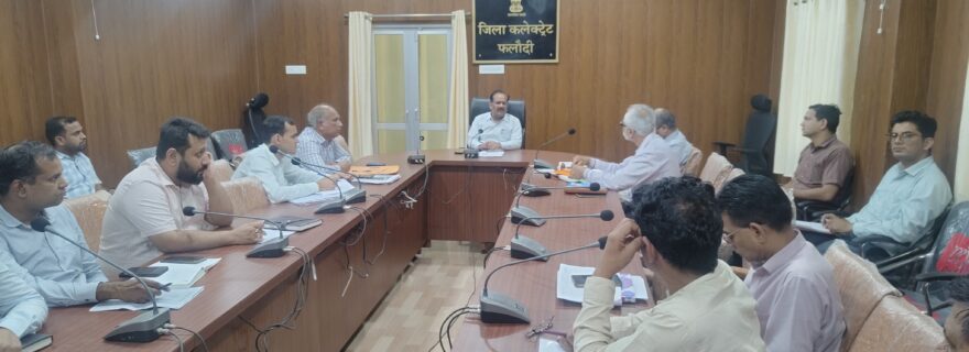 फलौदी। जिला कलक्टर एच.एल अटल की अध्यक्षता में साप्ताहिक समीक्षा बैठक कलेक्ट्रेट सभाकक्ष में आयोजित हुई। जिसमे विभागवार योजनाओं व कार्यों की समीक्षा करते हुए अधिकारियों को योजनाओं के क्रियान्वयन में प्रगति लाने व कार्यों की प्रभावी निगरानी रखने के निर्देश दिए।