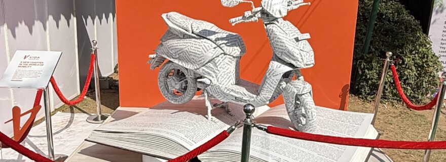 • लाइफ-साइज़ बुक इंस्टॉलेशन: एक उत्कृष्ट कलात्मक प्रदर्शन जिसमें एक घूमने वाले मंच पर एक विशाल पुस्तक से उभरता वीडा इलेक्ट्रिक स्कूटर दिखाया गया है, जो ” ईवी की दुनिया में एक नया अध्याय” का प्रतीक है।